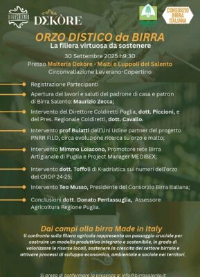 30 SETT_ A LEVERANO ESPERTI A CONFRONTO SU ORZO DISTICO DA BIRRA E MODELLO SI SVILUPPO MADE IN ITALY PER LE BIRRE ARTIGIANALI A FILIERA CORTA
