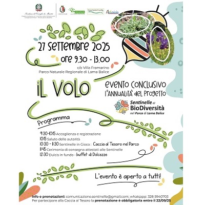 Domani nel Parco di Lama Balice l’evento conclusivo di “Sentinelle di Biodiversità”, il progetto di inclusione, natura e tutela condivisa