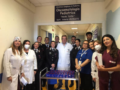 Il tenente Claudia Berbenni, il maresciallo Fabiana Agusta e il maresciallo Daniele Atzoriloro, che sono venuti in rappresentanza dell’intero corso allievi, hanno inoltre consegnato al dott. Valerio Cecinati, primario del reparto, una targa ricordo e a tutti i piccoli pazienti presenti la classica automobilina dei carabinieri. Si è tenuto così fede a ciò che aveva iniziato lo scorso anno il Comandante Oliva, promotore di questa iniziativa, che, a gennaio scorso, donò due carrelli per la sala narcosi frutto di una raccolta fondi del precedente corso di allievi marescialli. In quella occasione il comandante auspicò che diventasse una consuetudine che si tramandasse di corso in corso: promessa mantenuta dagli allievi che hanno terminato il 144° corso.