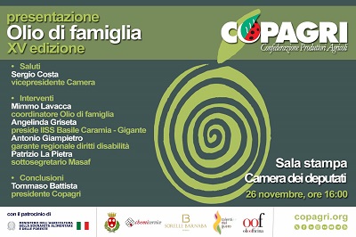 Presentata alla Camera l’iniziativa della Copagri “Olio di famiglia”, patrocinata dal Masaf