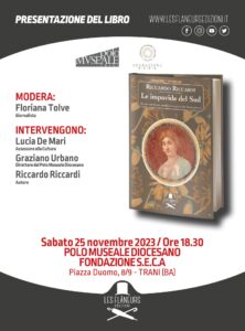 Sarà presentato sabato 25 novembre presso il Polo Museale Diocesano – Fondazione S.E.C.A (Piazza Duomo 8/9) di Trani (Ba) il saggio storico di Riccardo Riccardi “Le impavide del Sud” (Les Flaneurs Edizioni). Saluti del Sindaco Michele Sollecito. Oltre all’autore, interverranno l’Assessore alla Cultura Lucia De Mari e il Direttore del Polo Museale Graziano Urbano. Modererà l’incontro la giornalista Floriana Tolve. Inizio ore 18.30.