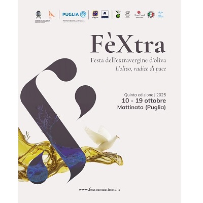 L’ulivo come simbolo di pace, identità e futuro. Con questa immagine si apre la quinta edizione di FèXtra, la Festa dell’extravergine d’oliva che dal 10 al 19 ottobre animerà Mattinata, nel cuore del Gargano. Dieci giorni di eventi, due weekend di esperienze e una cornice che intreccia tradizione e innovazione per celebrare l’“oro verde” di Puglia, vero ambasciatore della Dieta Mediterranea.