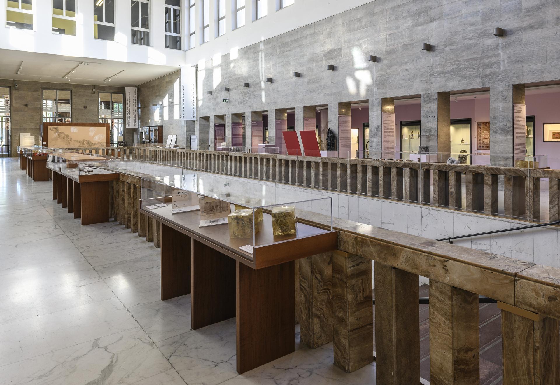 venerdì 3 ottobre il MUCIV-Museo delle Civiltà di Roma ha presentato il nuovo allestimento permanente delle collezioni paleontologiche e lito-mineralogiche dell’ISPRA-Istituto Superiore per la Protezione e la Ricerca Ambientale e la mostra personale Elisa Montessori. Il sogno della camera rossa, inedito dialogo fra una selezione delle collezioni cinesi del MUCIV e la ricerca di una delle grandi artiste italiane contemporanee. Organizzato in collaborazione fra ISPRA-Istituto Superiore per la Protezione e la Ricerca Ambientale e MUCIV-Museo delle Civiltà di Roma, con il sostegno di ALES-Arte Lavoro e Servizi S.p.A., il progetto del nuovo allestimento permanente – Animali, Vegetali, Rocce e Minerali: le Collezioni ISPRA > Un museo multispecie – costituisce il risultato finale del processo, avviato nel 2022, di studio, restauro e ricondivisione con il pubblico di queste collezioni di straordinario valore storico e scientifico. Costituite da oltre 150.000 reperti (fossili animali e vegetali, campioni di rocce e minerali, rilievi geologici, strumentazioni scientifiche, busti, ritratti, cimeli e documentazioni), le collezioni ISPRA documentano l’attività del Servizio Geologico d’Italia e dei suoi studiosi che, in accordo con il pensiero del XIX secolo, assegnarono alla scienza un ruolo imprescindibile nei confronti della moderna industria nazionale, ponendo l’essere umano e il suo controllo dell’ambiente al centro di processi articolati e di lungo periodo. Nel monumentale Salone delle Scienze al primo piano del MUCIV – che reca al centro l’altrettanto monumentale tarsia marmorea di Mario Tozzi del 1942, appositamente restaurata – queste collezioni divengono la premessa per una nuova museologia che evidenzi le stratificazioni e la dinamicità geologica del nostro pianeta, le continue trasformazioni dei territori, l’origine, la diversificazione e la necessità di coesistenza e interazione fra tutte le specie viventi. Traendo sollecitazioni delle specie animali, minerali e vegetali, la riesposizione di queste collezioni pone le basi non solo per l’avvio al MUCIV della nuova scuola di discipline ambientali dell’ISPRA ma anche per una serie di attività di formazione e approfondimento (a cui saranno dedicate nuove aule didattiche e depositi aperti) che permetteranno di riflettere con il pubblico sull’estrema fragilità degli ecosistemi naturali invitando a interrogarci insieme su nuove forme e comportamenti di consapevolezza e sostenibilità ecologiche. |