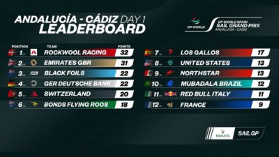 La folla esaurita si è goduta l’azione dal Race Stadium appositamente costruito, con altre migliaia di persone che si sono accalcate sulla diga per dare un’occhiata all’azione. La squadra di casa, la Spagna, ha del lavoro da fare in vista della seconda giornata. Settimi nella classifica dell’evento, i campioni in carica del Rolex SailGP hanno bisogno di un grande risultato domani per salvare non solo il fine settimana, ma anche le loro speranze di un posto nella Grand Final di Abu Dhabi.