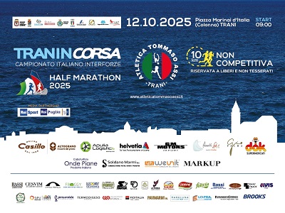 La mezza maratona più attesa del sud torna domenica 12 ottobre con un’edizione da record. Per la prima volta in Puglia l’A.S.D. Atletica Tommaso Assi ospita il Campionato Italiano Interforze di Mezza Maratona. Un’occasione unica per vedere in gara, fianco a fianco, atleti provenienti da tutte le Forze armate e di Polizia del Paese e civili pronti a sfidarsi sullo spettacolare percorso della gara.
